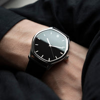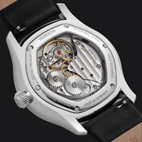 The Horizon Black Pearl captivates with its striking depth and minimalist elegance. Its dial, coated in Musou Black, absorbs 99.5% of light, creating an almost infinite abyss. This unparalleled finish ensures a fascinating play of light and shadow, enhancing the watch’s mysterious aura. Powered by a refined Swiss hand-wound Sellita movement, visible through the exhibition case back, this timepiece is a true statement of understated sophistication.
